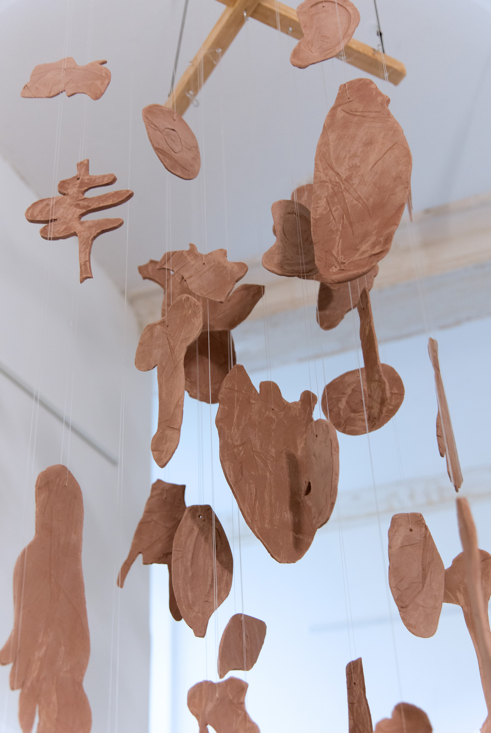 Clay slabs bisque-fired, steel cable, copper wire